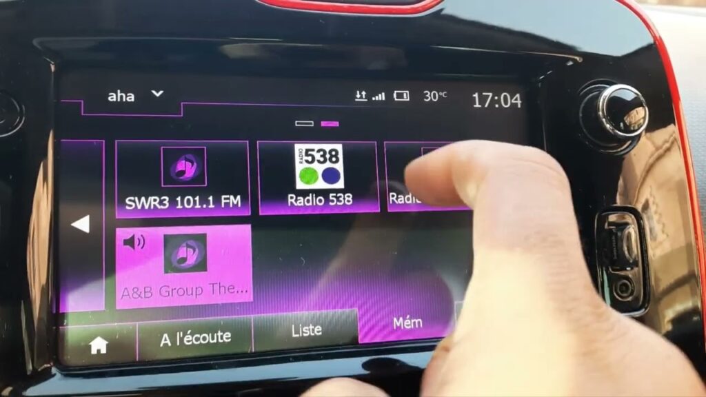 - La integración en el coche: Una vez que has organizado tus estaciones favoritas en la aplicación de tu teléfono, el siguiente paso es conectar tu smartphone al sistema de infoentretenimiento de tu Renault (o cualquier otro vehículo compatible). Esto se solía hacer a menudo mediante un cable USB o, en algunos modelos, a través de Bluetooth. Una vez conectado, el sistema del coche detecta la aplicación Aha en tu teléfono y la interfaz de Aha se proyecta en la pantalla de tu salpicadero.