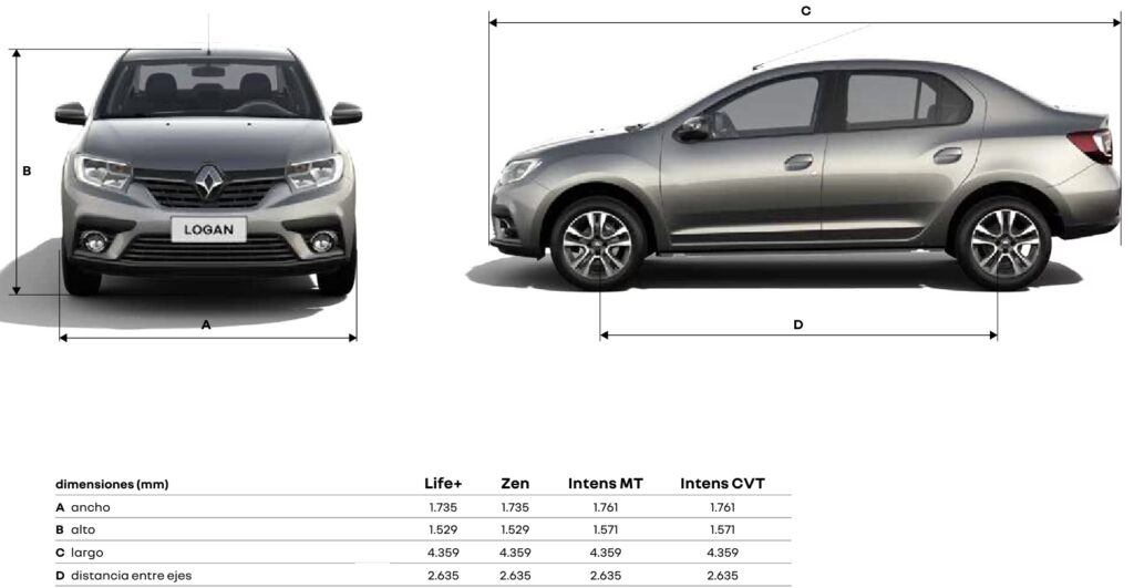 - Dimensiones Clave: Longitud y Ancho del Renault Logan
