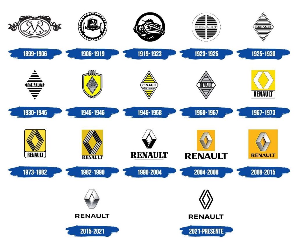 Renault ha tenido un total de 18 diseños de logo a lo largo de sus más de 120 años de historia, mostrando una notable evolución en su identidad visual.